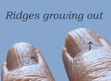 After a week in bed, doing nothing, the swelling went away and I felt better. I began to wonder if there had been any change to my nails before the stress had cut short my dancing exercise. Before the major stress I had wondered if the fingernail ridges that play a part in bending would grow out and the bending would resolve into nice smooth nails, but with all the additional stress… What was going on, I wondered.
